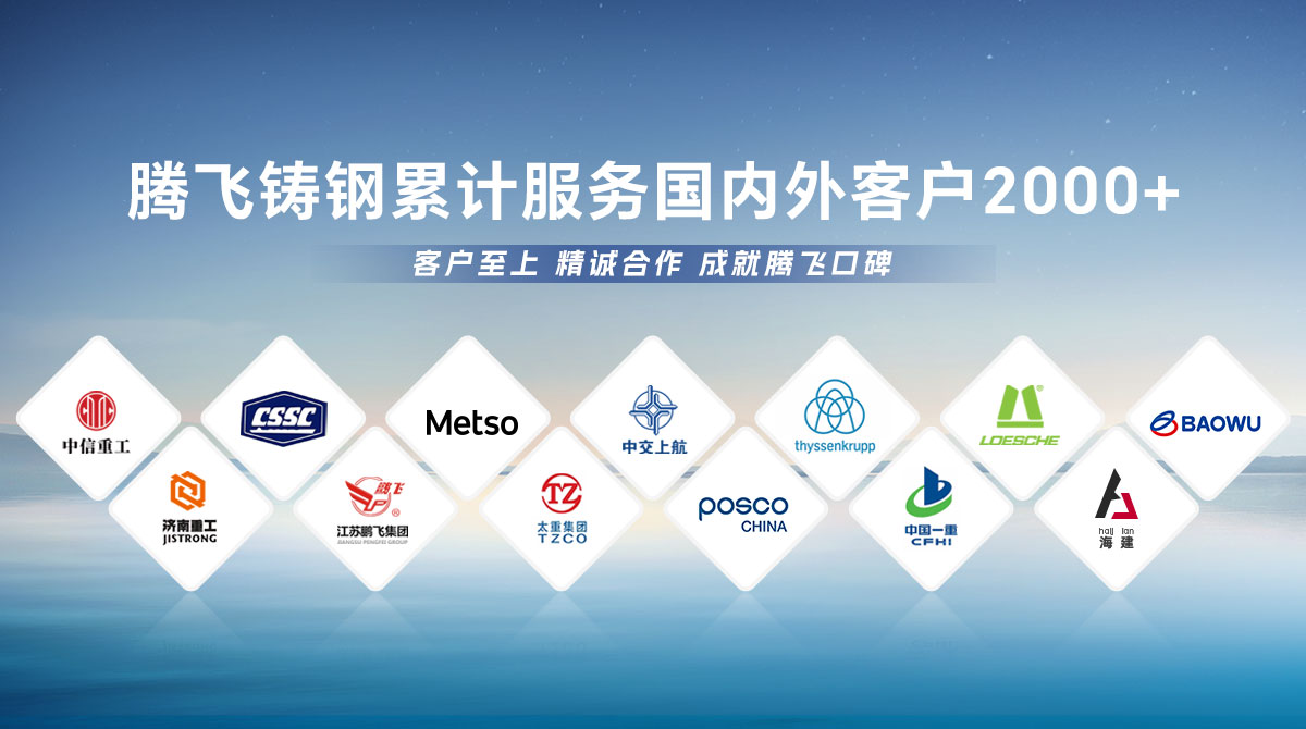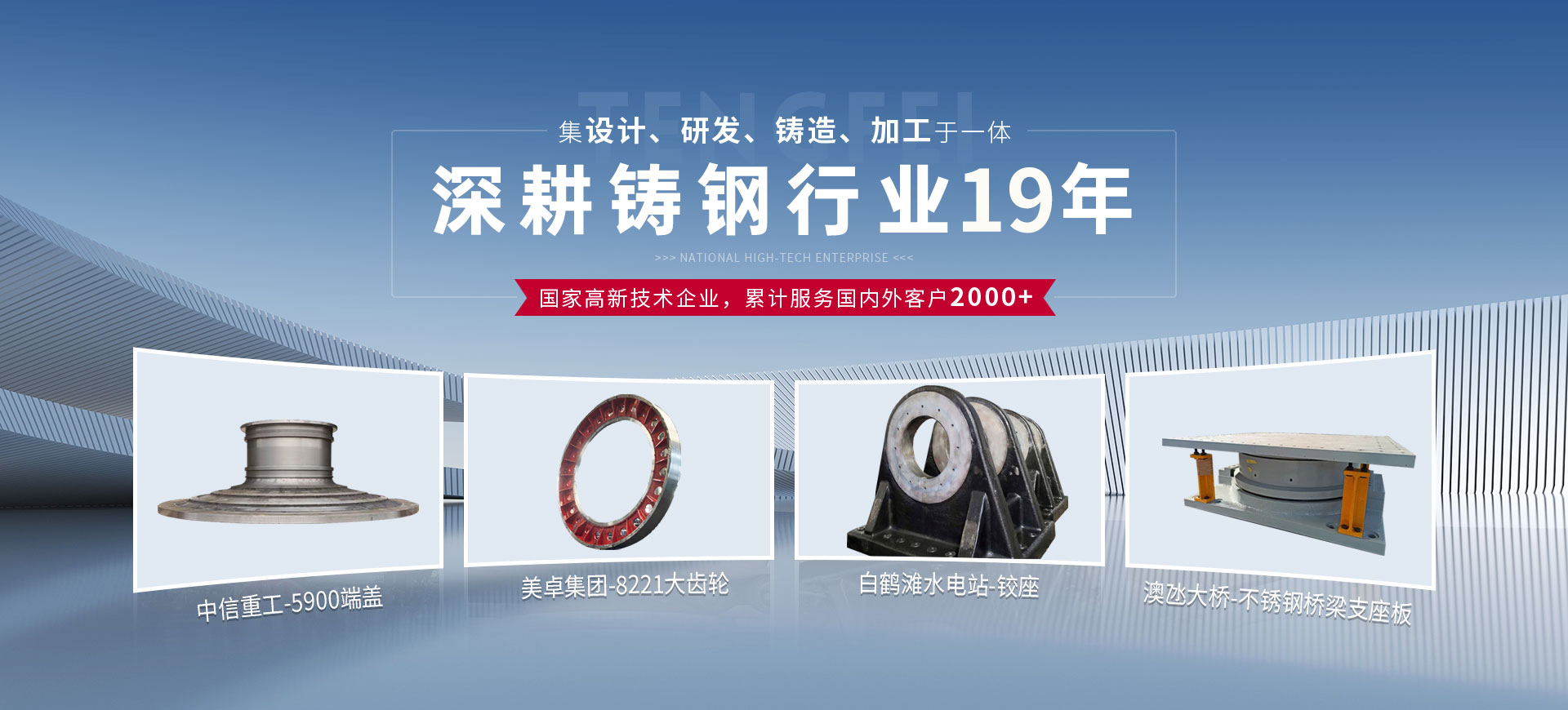 騰飛鑄鋼成立于2006年,位于全國鑄造基地河南省新鄉市,擁有員工300余人,是一家從事150噸以下碳鋼、低合金鋼、不銹鋼鑄鋼件研發、制造、服務為一體的國家高新技術企業?! 」就ㄟ^了ISO9001國際質量管理體系認證,擁有2項發明專 利,2項河南省科技成果、25項實用新型技術,通過了“環保績效評級B級企業”驗收,先后榮獲“河南省鑄造行業綠色發展企業”、 “河南省科技型中小企業”、“河南省專精特新中小企業”等榮譽稱號?! 」緭碛?臺25噸電爐,4臺大型天燃氣熱處理爐、10米回旋自動拋丸機一臺, φ8m數控立車、φ10m數控滾齒機等各類高精裝備100余臺套,年產能3萬余噸,能為客戶提供從產品設計、木模加工、大型鑄造、大型加工一站式服務,產品廣泛應用于建材、冶金、鍛壓、冶金、水工、路橋、化工等多個重型行業?! ¢L期服務于中信重工、中船重工、美卓、上海中交、萊歇、寶武、濟南重工等全球知名企業,在行業內擁有較高的市場知名度和美譽度。